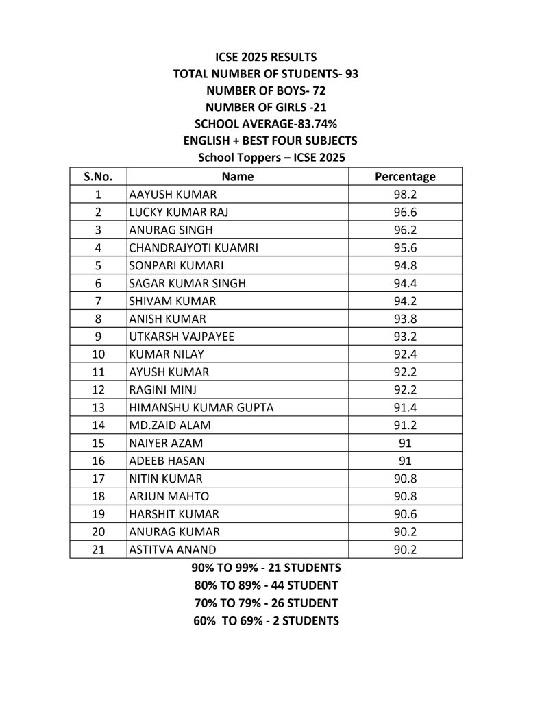| BOARD RESULTS ICSE (YEAR-10) EXAMINATIONS | |||||