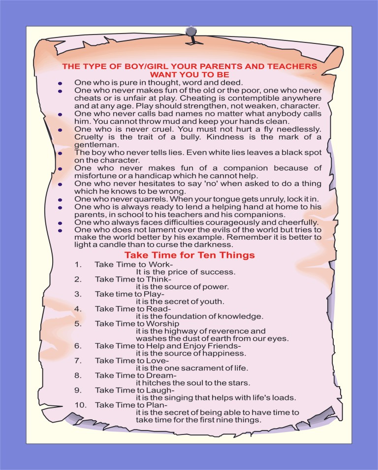 TO BE POLITE, FRIENDLY AND WELL BEHAVED INSIDE AND OUTSIDE THE SCHOOL.